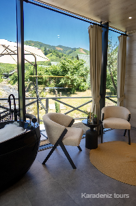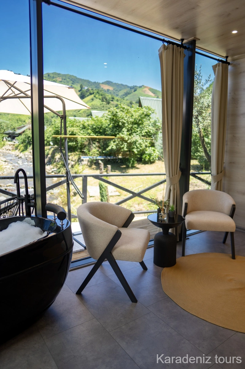 Tesisin Ardeşen’de, Oce Köyü mevkiinde konumlanması; odanın en önemli değerlerinden biridir. Bölgenin doğal yapısı, orman ve dere manzarasıyla birleştiğinde kullanıcıya daha güçlü bir Karadeniz deneyimi sunar.