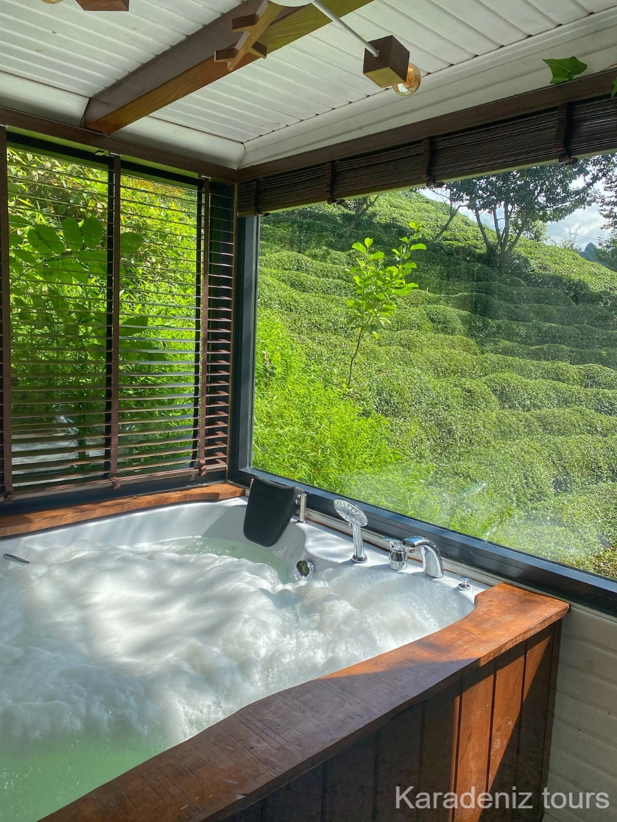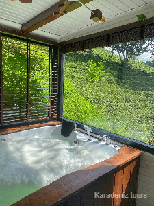 Rize’nin o meşhur sis denizini ve yemyeşil çay bahçelerini, sıcak bir jakuzinin içinden izlemek ister misiniz? Espenika Jakuzili Bungalov, sadece bir konaklama değil, doğayla baş başa kalacağınız özel bir deneyim alanı. Geniş verandası, ayrı jakuzi odası ve şömine keyfiyle burası sizin Rize’deki ikinci eviniz.