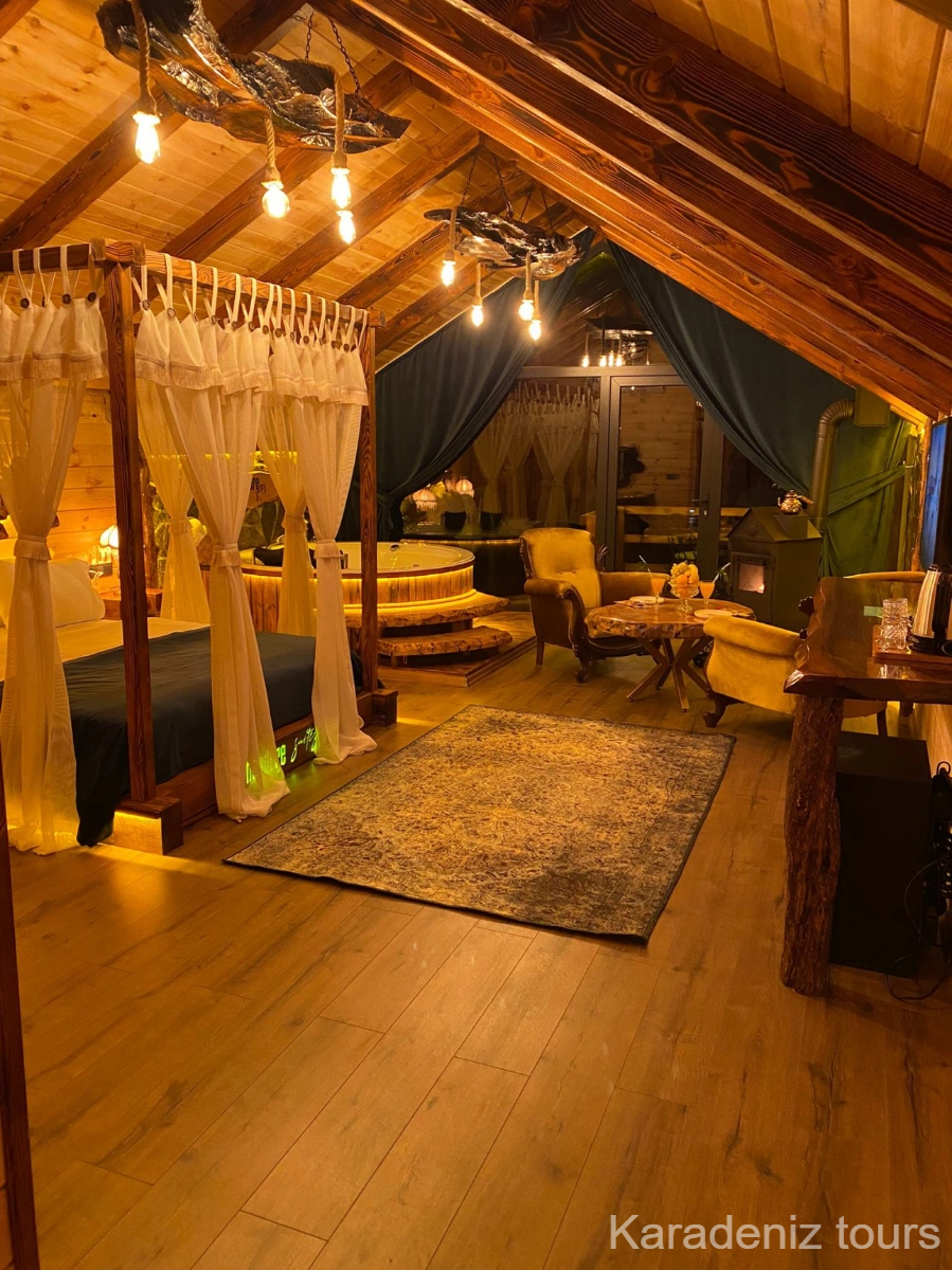 Rize Çamlıhemşin'de Fırtına Deresi manzaralı, jakuzi, Türk hamamı ve şömineli geniş bir bungalov arıyorsanız, Hoşdere Bungalov Quenn Bungalow sizin için güçlü bir seçenek olabilir. Tarihinizi paylaşın, müsaitlik ve net fiyat bilgisini hemen iletelim.