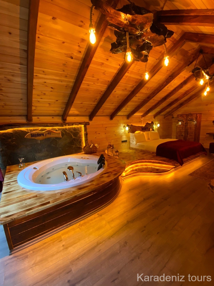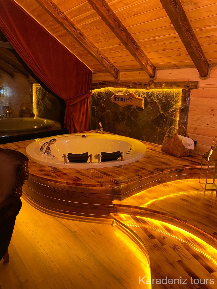 Rize Çamlıhemşin'de 15 m² Türk hamamı, jakuzi ve şömineli tesisin en premium odası için tarihinizi paylaşın, müsaitlik ve net fiyat bilgisini hemen iletelim.