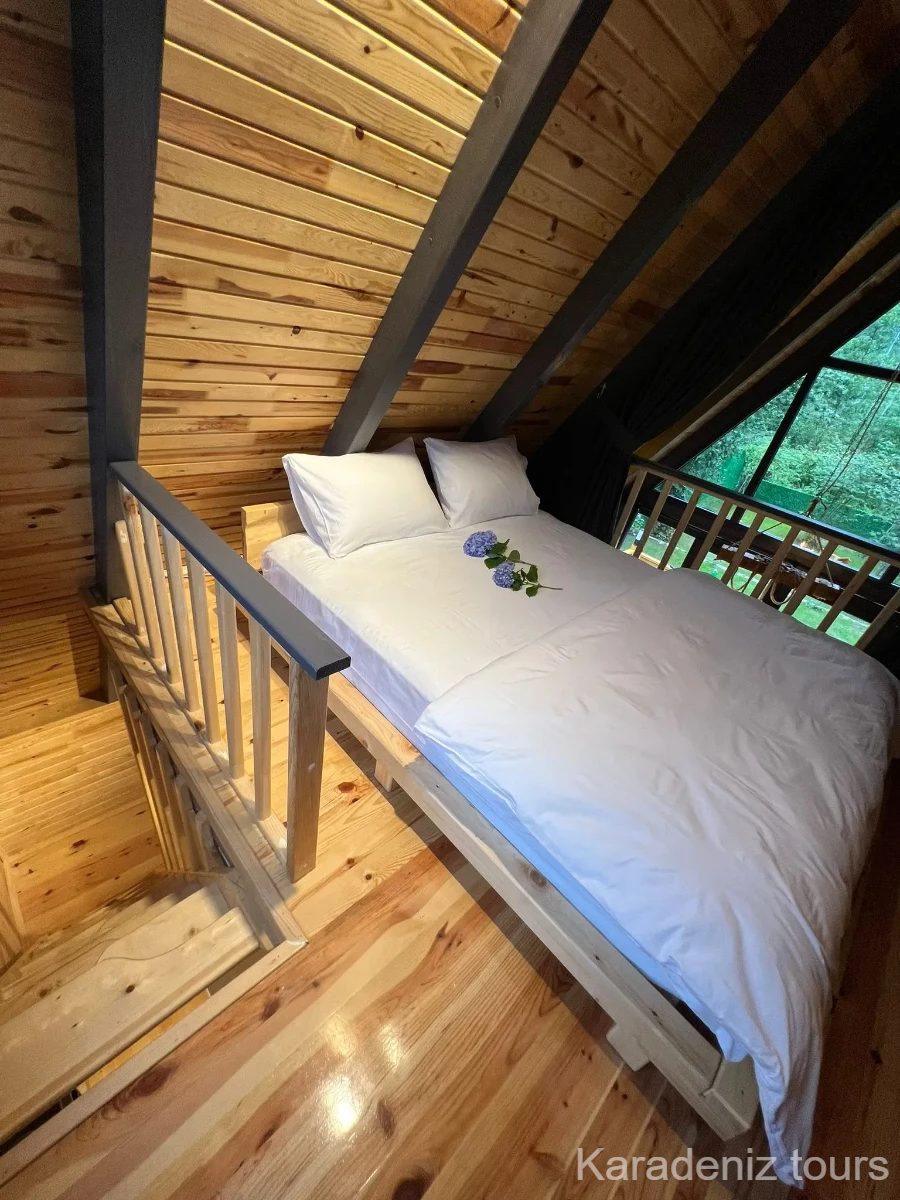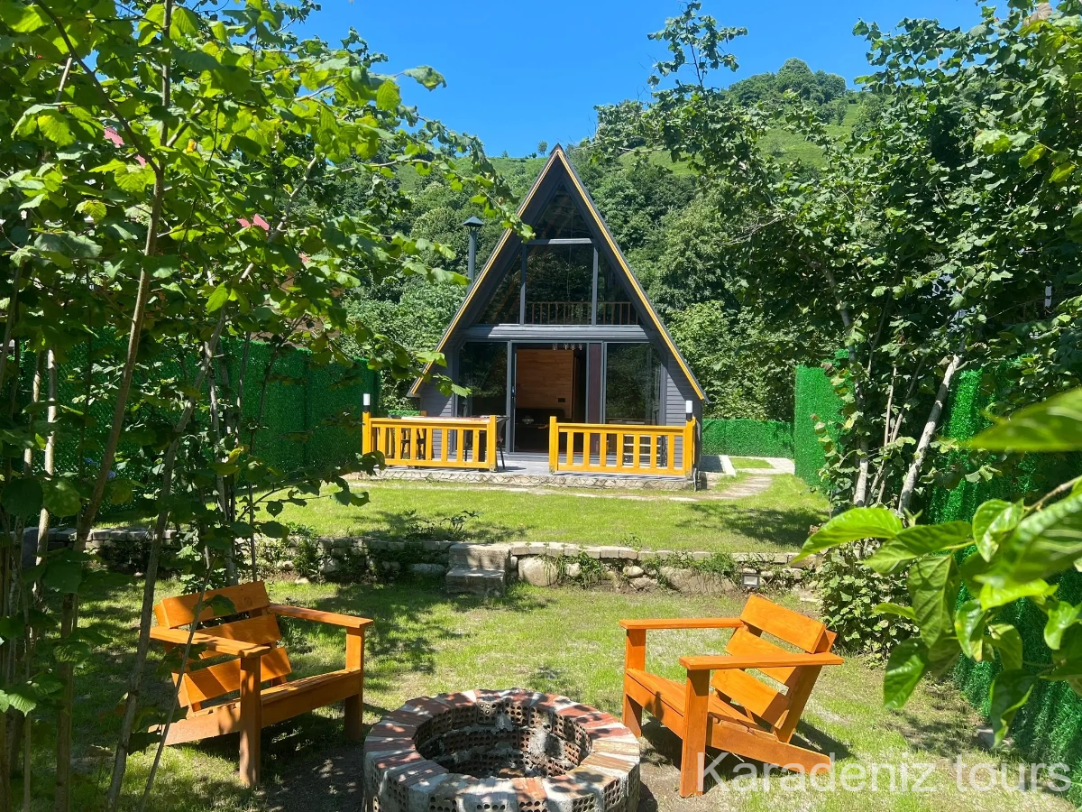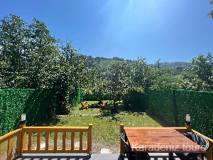 Fırtına Deresi'nin hemen yanı başında konumlanan bungalov, derenin sesini ve serinliğini konaklama boyunca sürekli olarak misafirlerine sunar. Sabah uyanışından akşam yatışına kadar doğanın ritmiyle senkronize bir tatil deneyimi yaşanır.