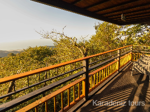 Teras odaları geniş teraslarından Karadeniz'e 360 derece panoramik manzara sunarken, balkon odaları ormanın yeşiliyle bütünleşen doğa ve bahçe manzarasıyla huzur dolu bir atmosfer yaratır. Her iki konsept de Rize'nin benzersiz coğrafyasını farklı açılardan misafirlerine hediye eder.